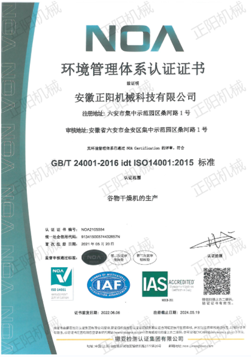 環(huán)境管理體系認(rèn)證證書