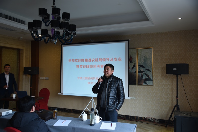 2017年3月6日下午,江蘇盱眙縣農(nóng)機(jī)局領(lǐng)導(dǎo)帶領(lǐng)當(dāng)?shù)剞r(nóng)業(yè)精英朋友來(lái)到安徽正陽(yáng)機(jī)械科技有限公司考察指導(dǎo)。